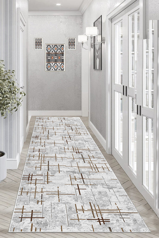 Eskitme Gri Yeni Nesil Baskılı Halı & Yolluk