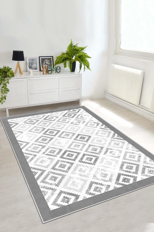 Petek Gri Yeni Nesil Baskılı Halı & Yolluk