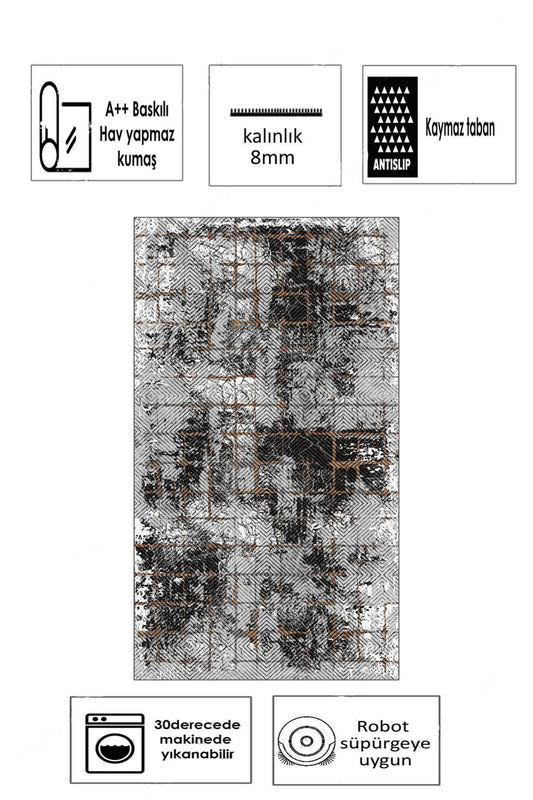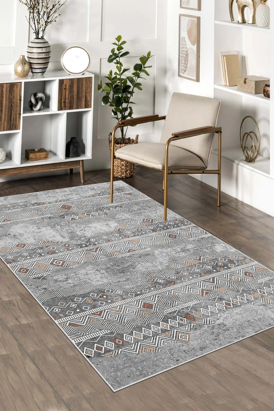 Kare Dizayn Gri Yeni Nesil Baskılı Halı & Yolluk