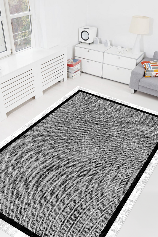 Hasır Siyah Yeni Nesil Baskılı Halı & Yolluk