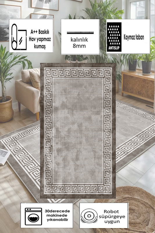 Zara Kahve Yeni Nesil Baskılı Halı & Yolluk