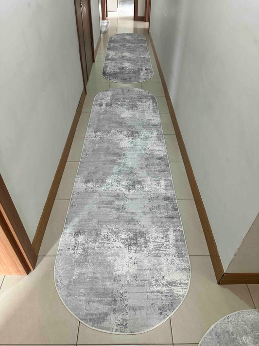 Eskitme Gri oval Yeni Nesil Baskılı Halı & Yolluk