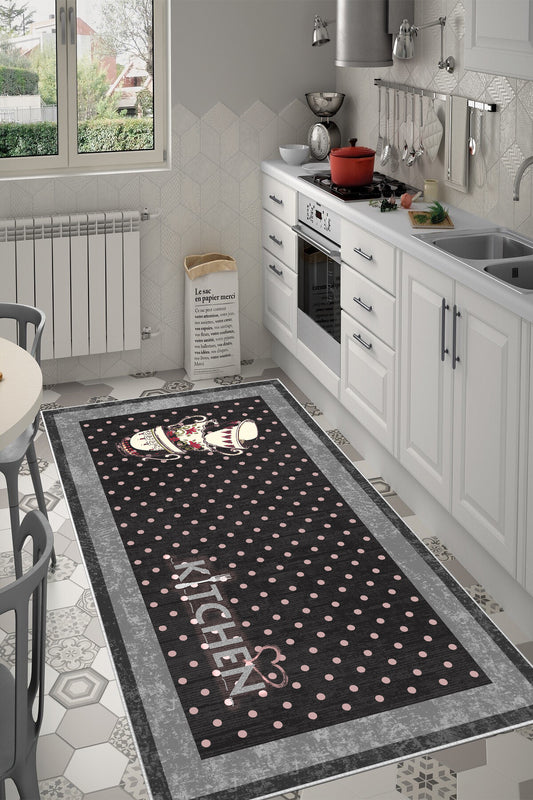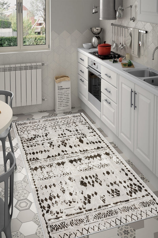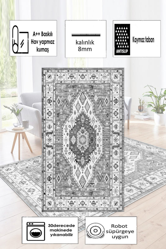 Retro Gri Yeni Nesil Baskılı Halı & Yolluk