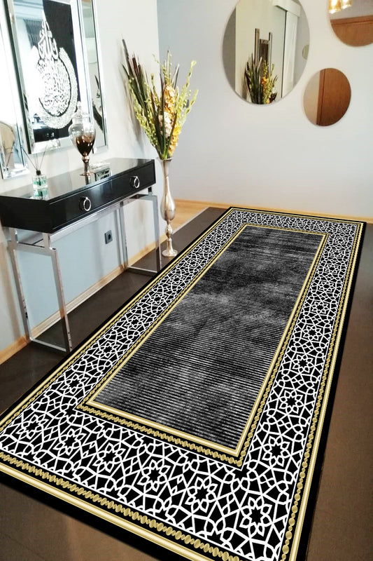 Saray Siyah Yeni Nesil Baskılı Halı & Yolluk