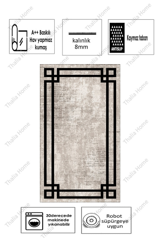 Çubuk Gri Yeni Nesil Baskılı Halı & Yolluk