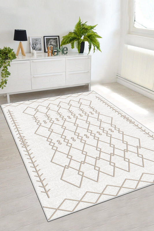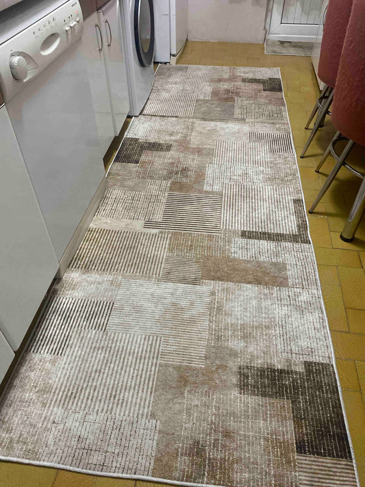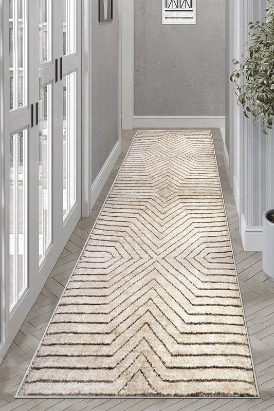 Line Bej Yeni Nesil Baskılı Halı & Yolluk