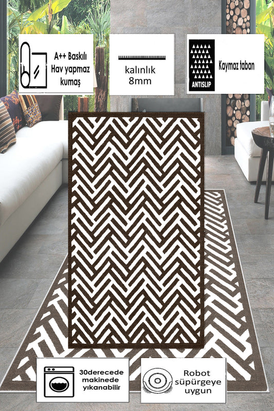 Labirent Kahve Yeni Nesil Baskılı Halı & Yolluk