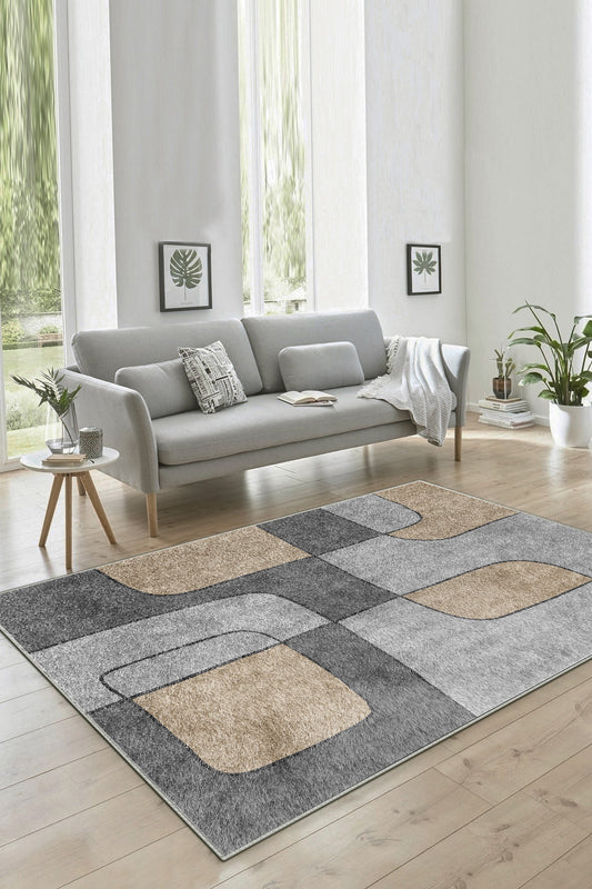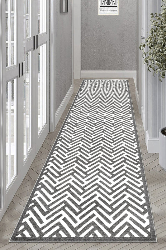 Labirent Gri Yeni Nesil Baskılı Halı & Yolluk