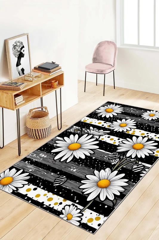 Papatya Siyah-Beyaz Baskılı Kaymaz Taban Mutfak Halısı