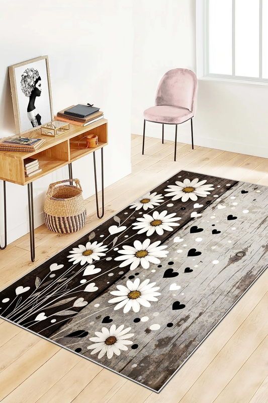 Çiçek Desenli Baskılı Kaymaz Taban Halı