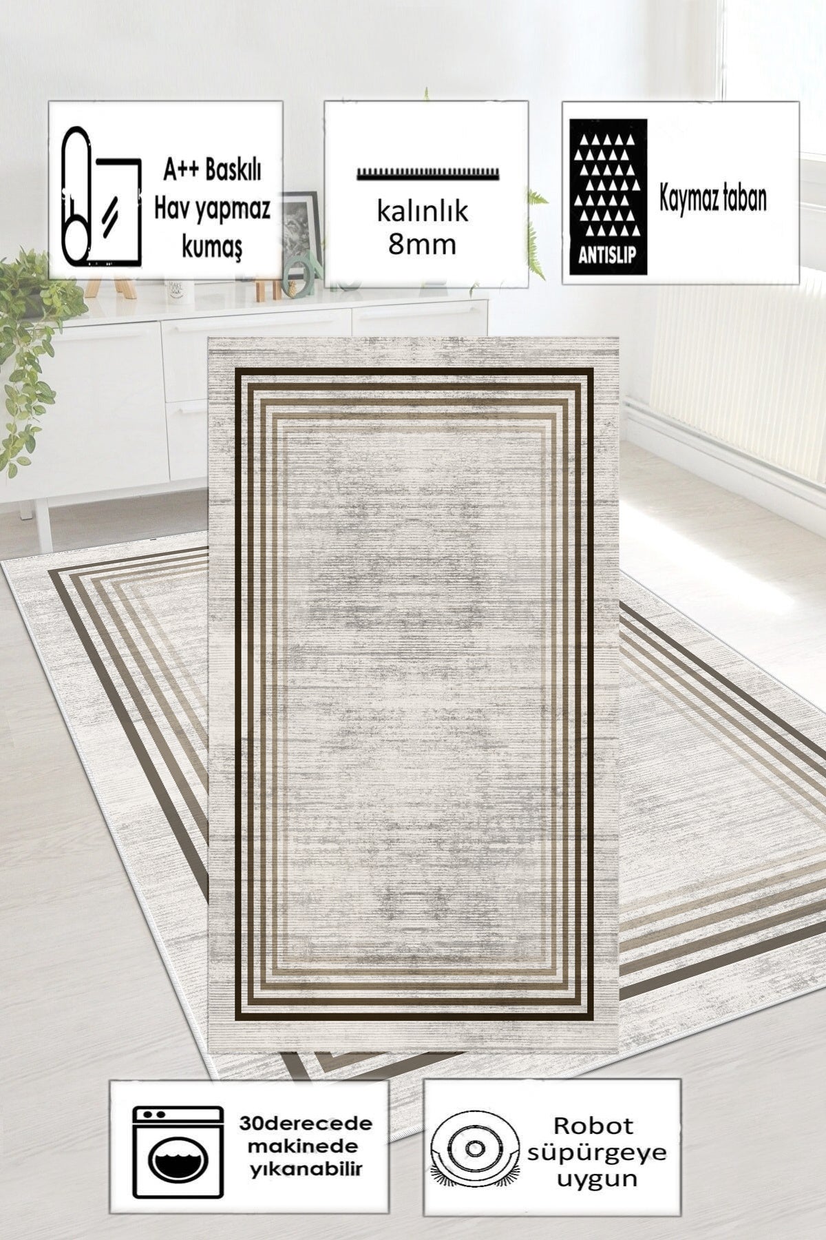 Aura Bej Yeni Nesil Baskılı Halı & Yolluk