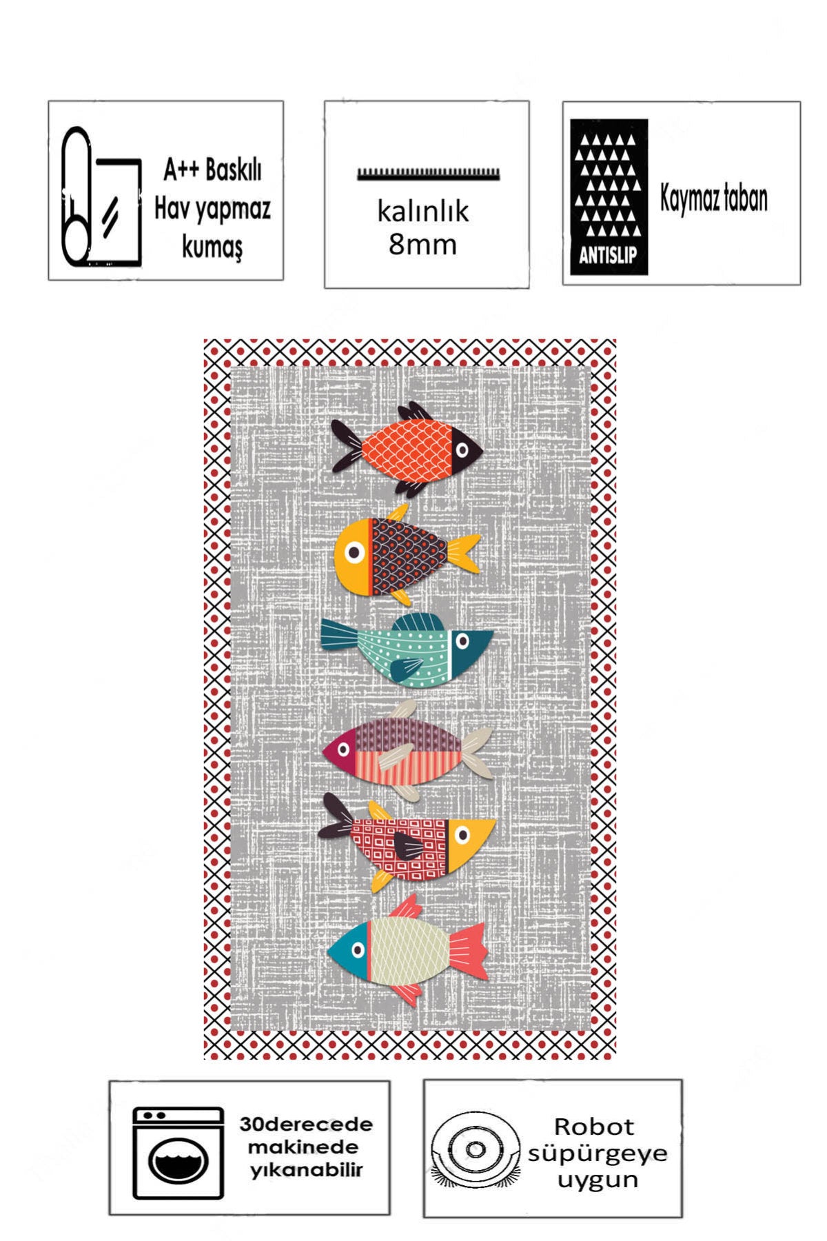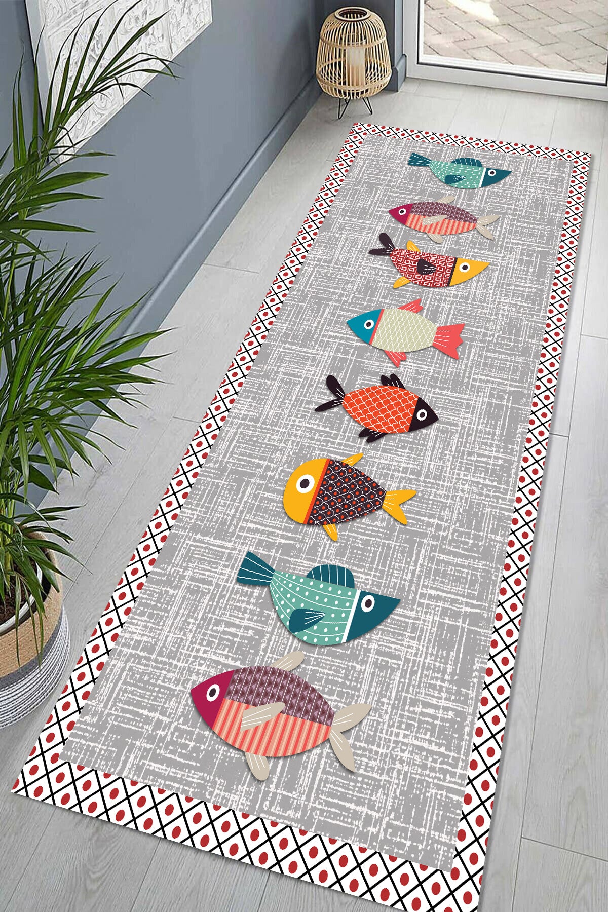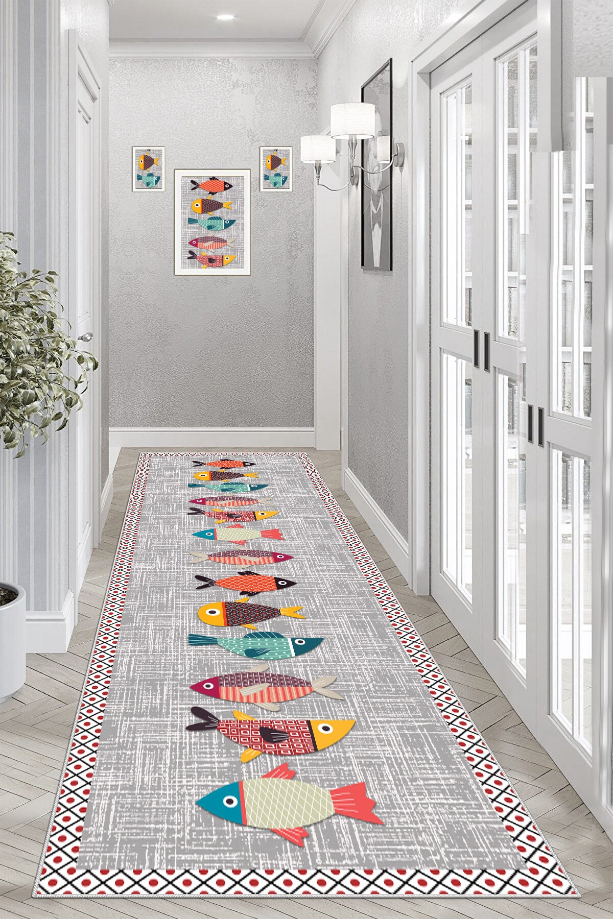 Balık Gri Yeni Nesil Baskılı Halı & Yolluk