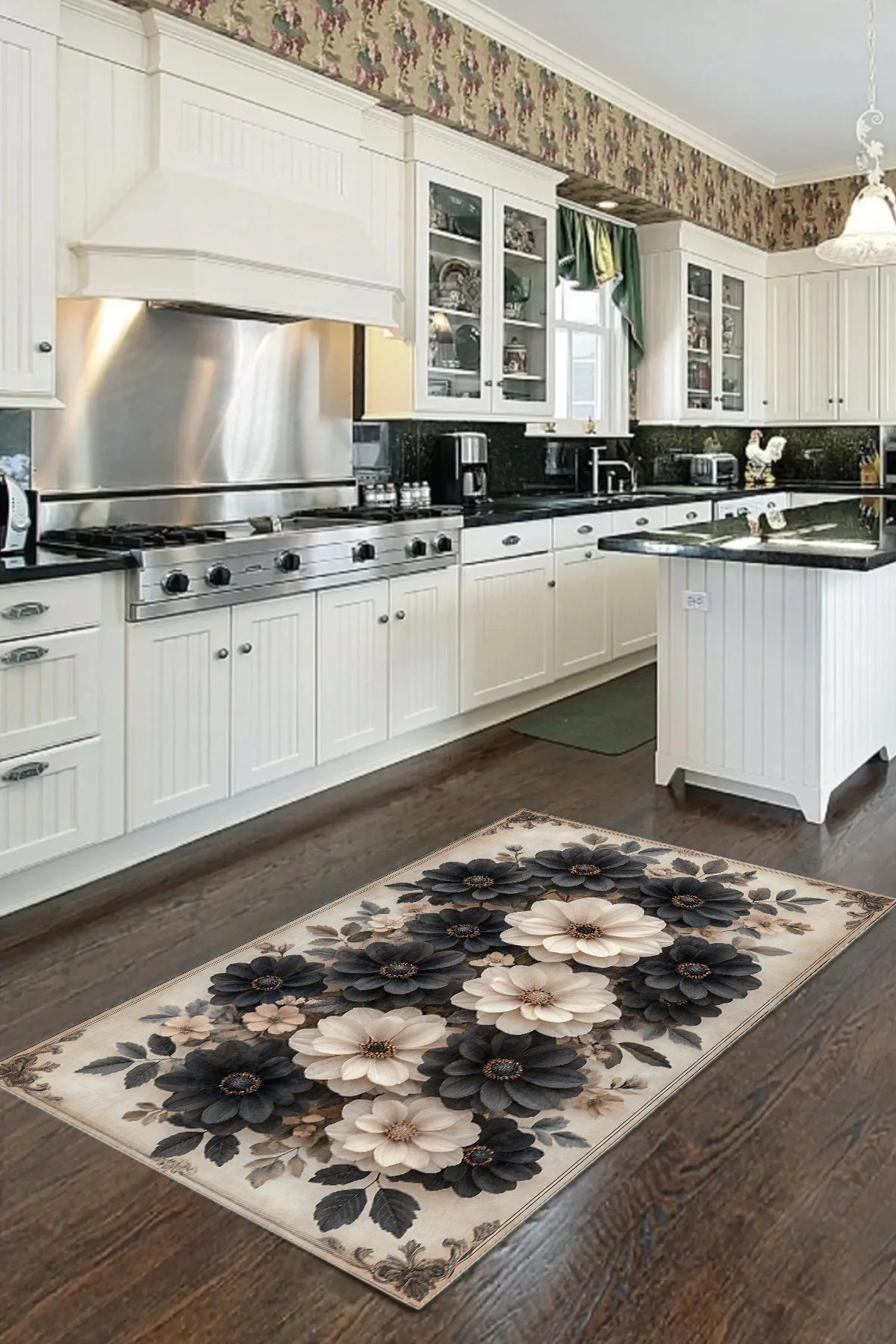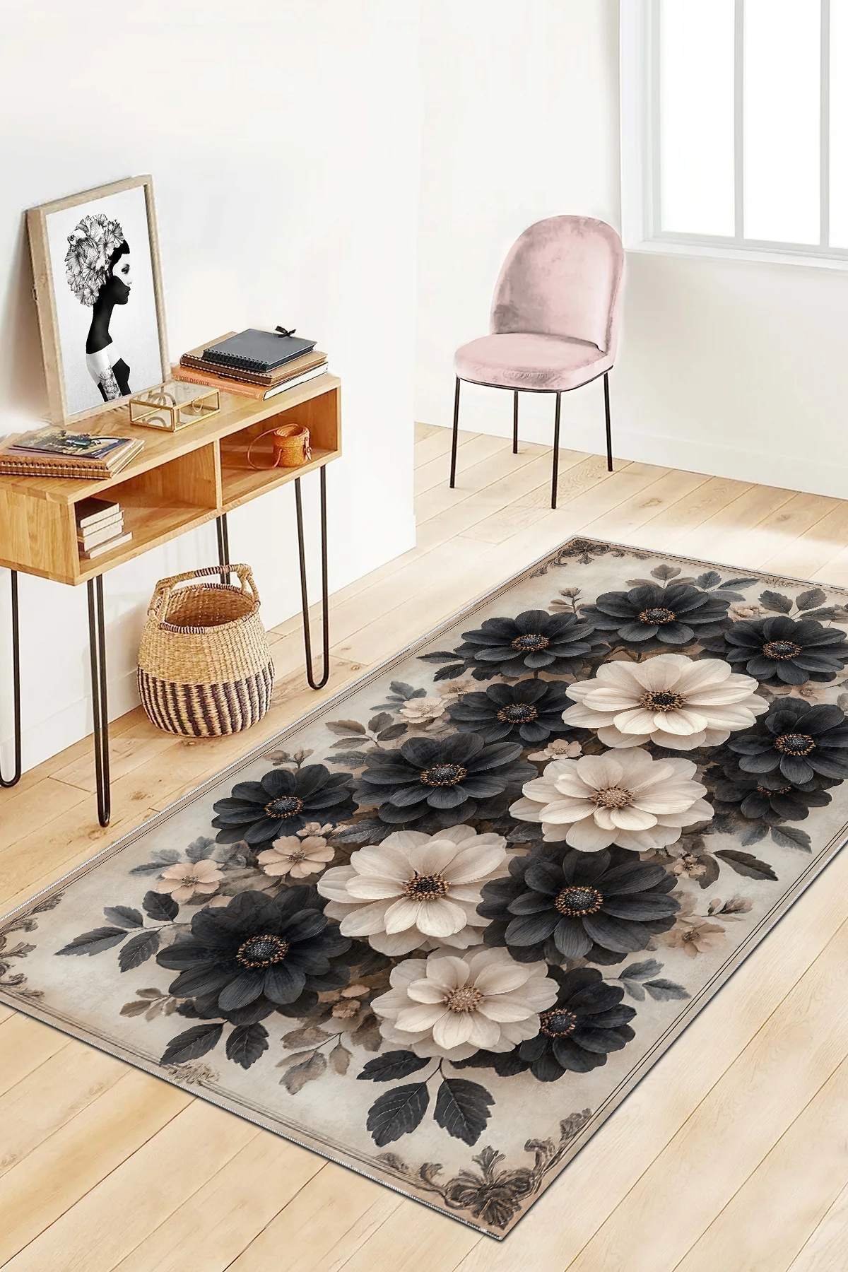Çiçek Desenli Baskılı Kaymaz Taban Halı