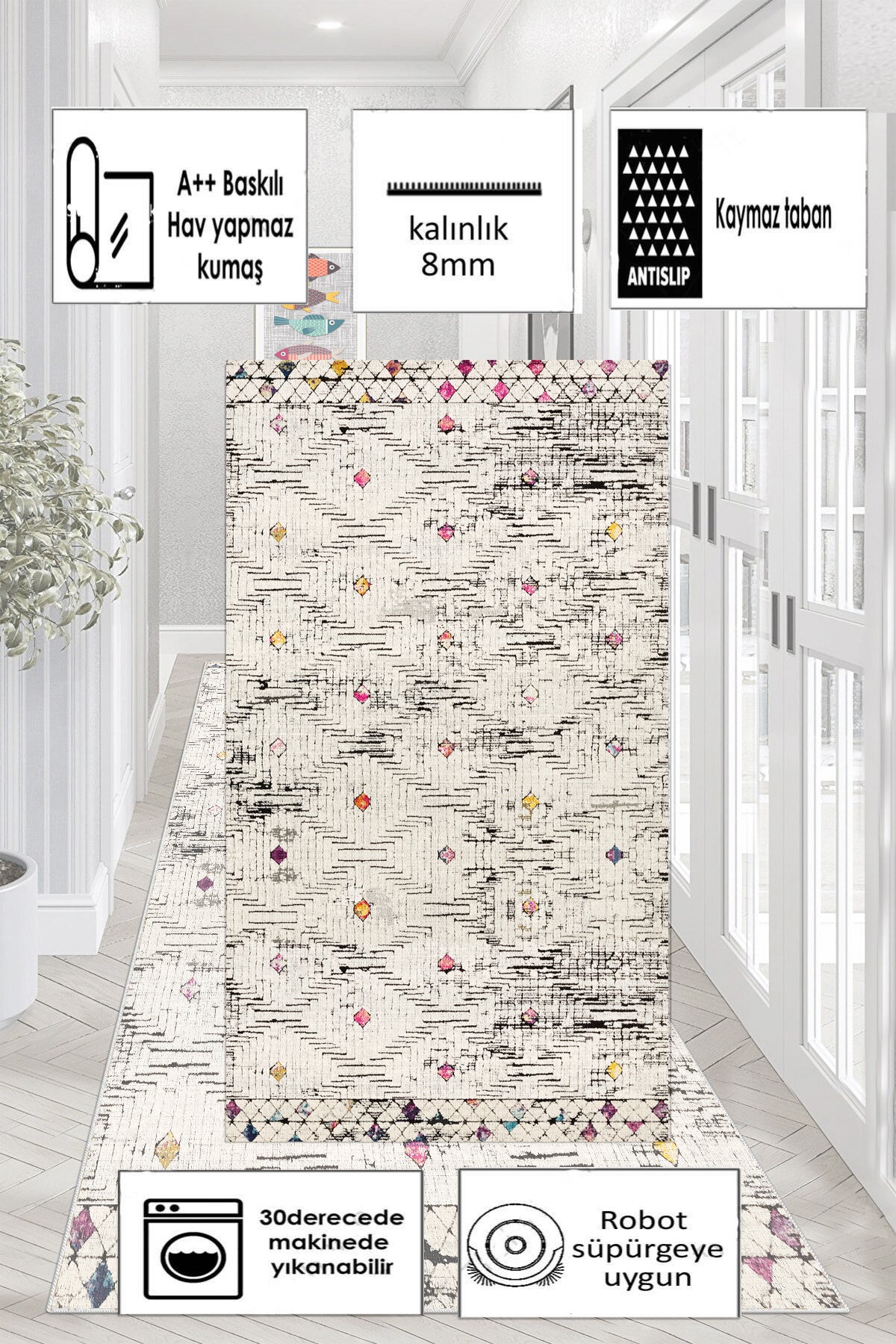 Elmas Desen Baskılı Kaymaz Taban Mutfak Halısı