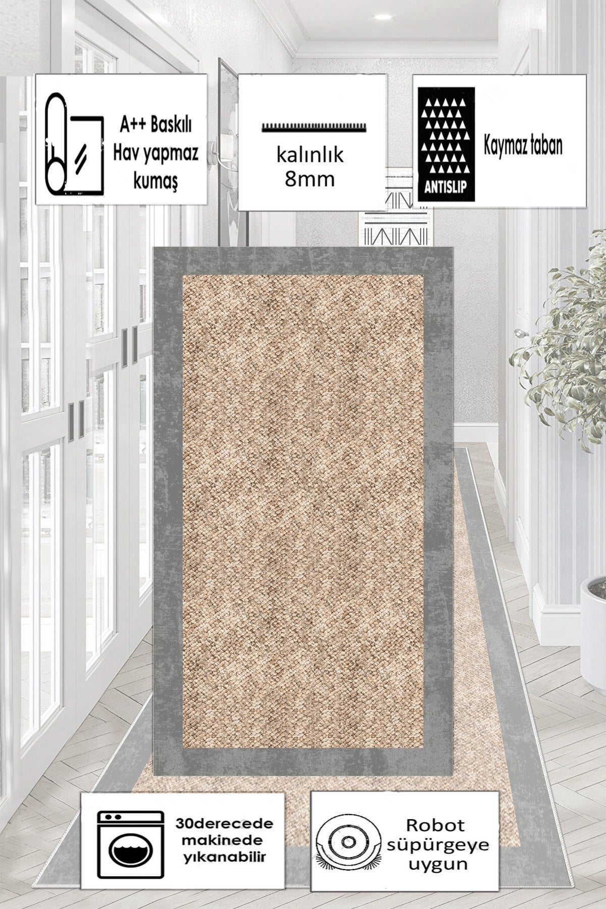 Hasır Gri Yeni Nesil Baskılı Halı & Yolluk