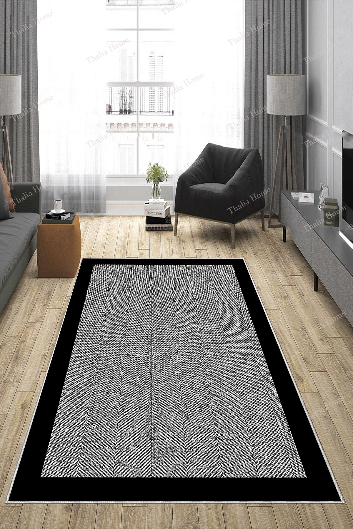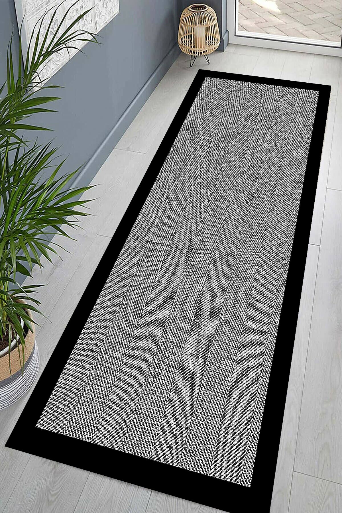 Hasır Siyah Yeni Nesil Baskılı Halı & Yolluk