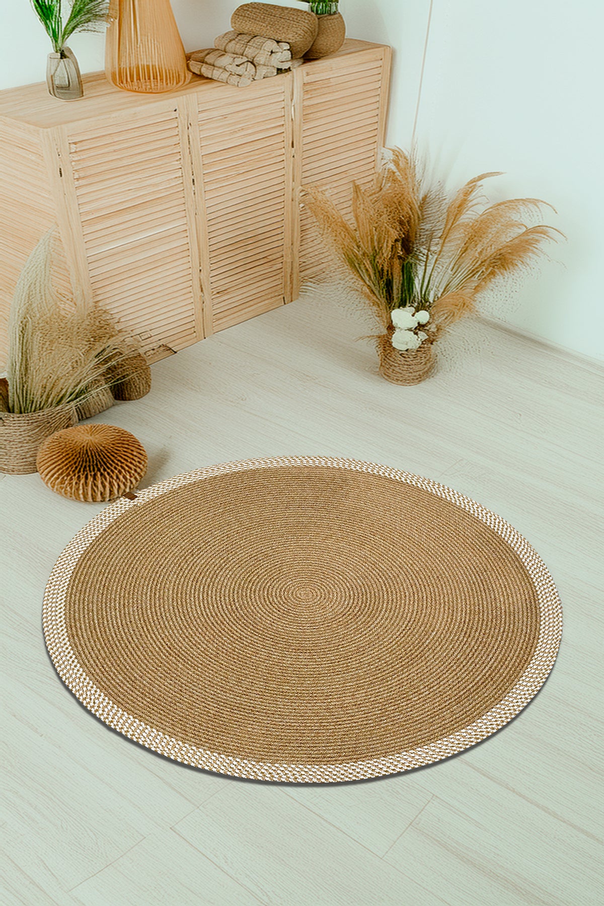 Jüt Kilim Yuvarlak Hasır Halı ( Hasır-Krem )