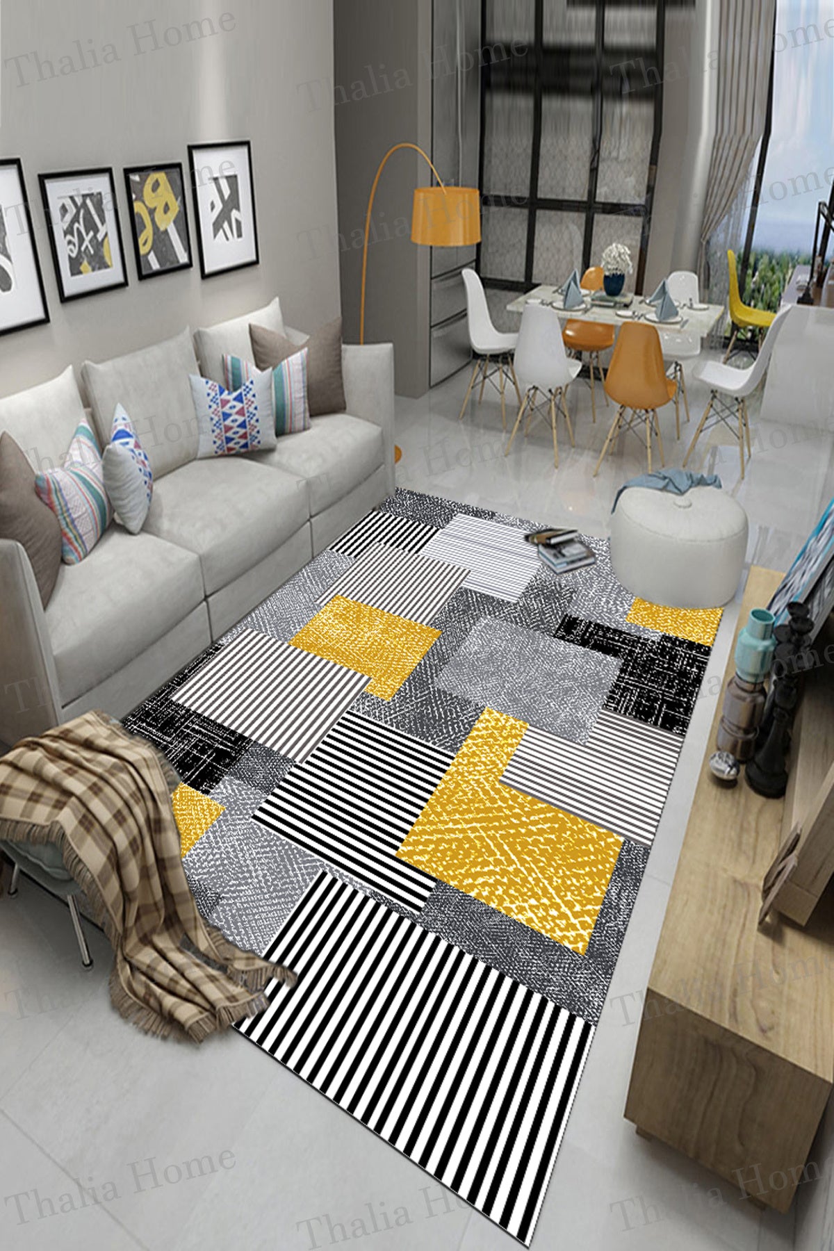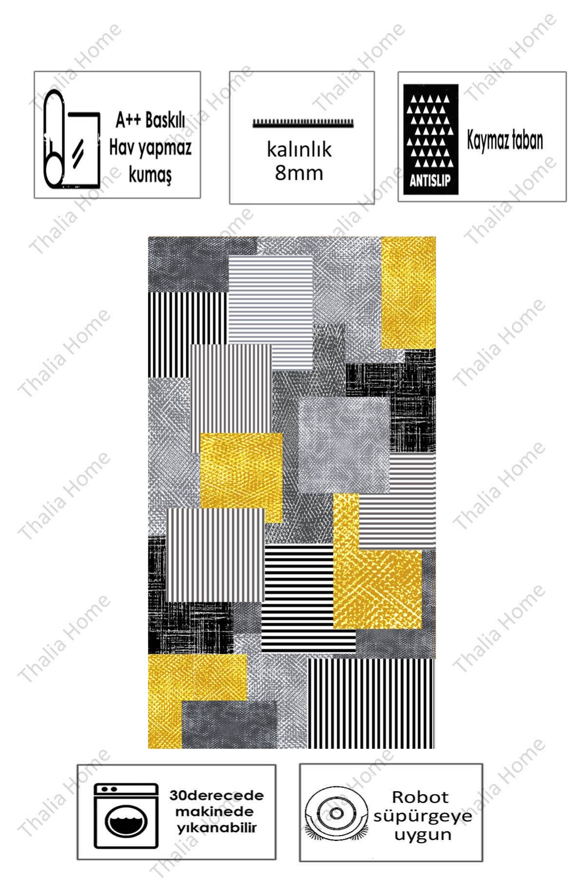 Kare Dizayn Gri Yeni Nesil Baskılı Halı & Yolluk