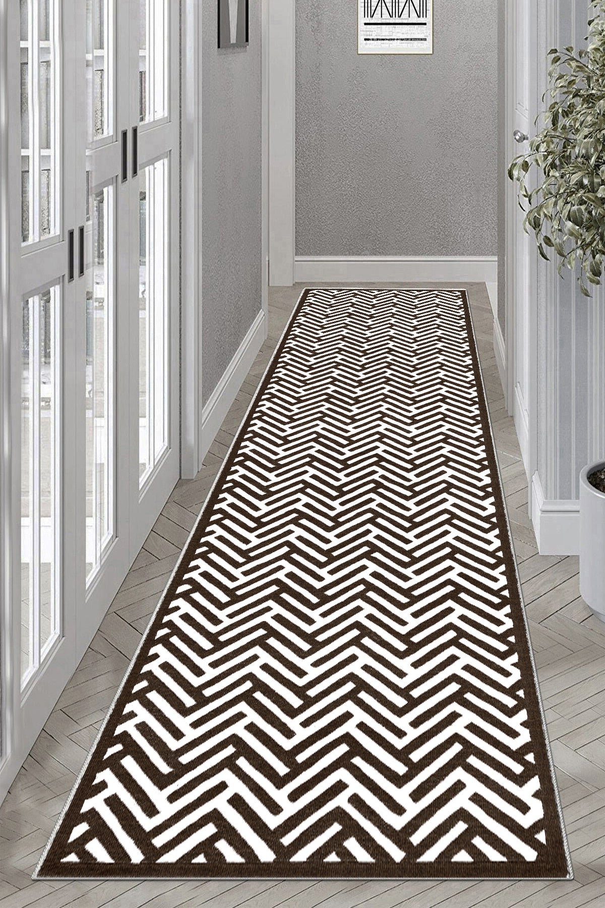Labirent Kahve Yeni Nesil Baskılı Halı & Yolluk