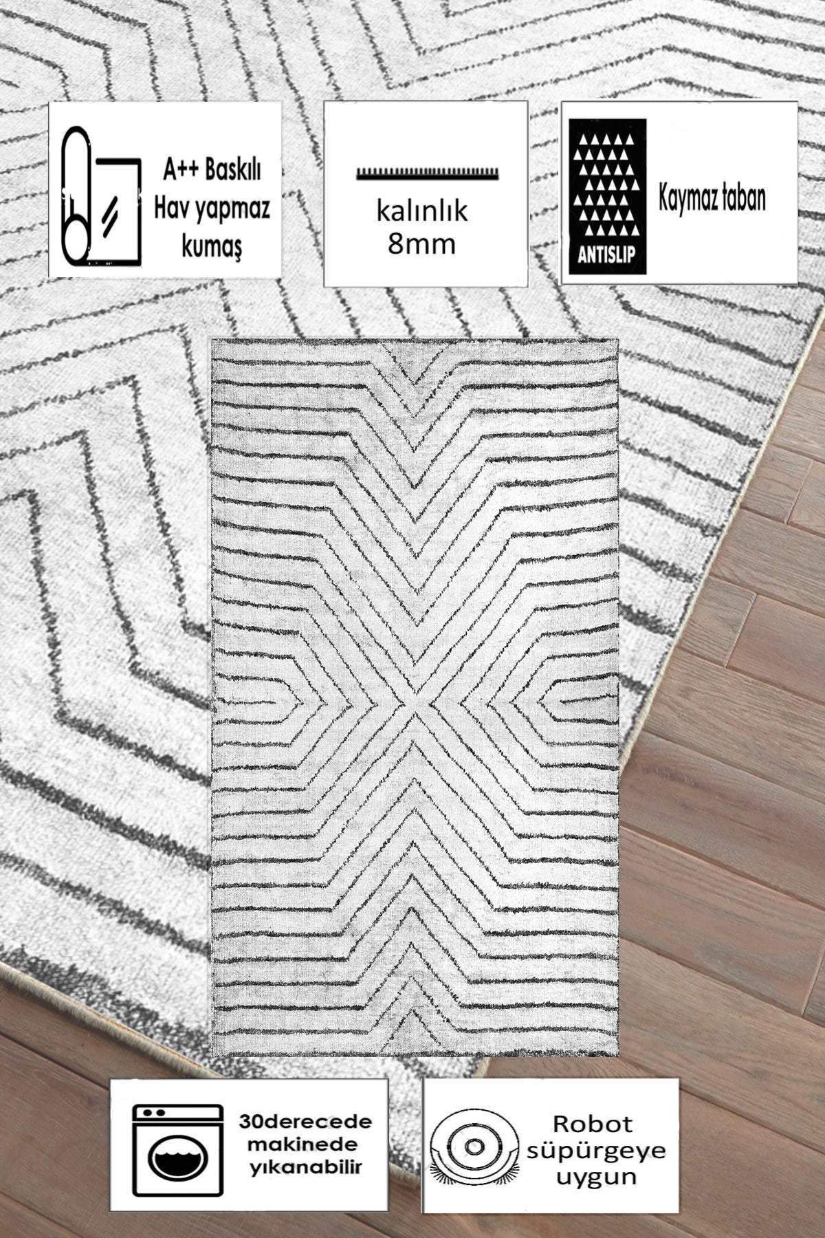 Line Gri Yeni Nesil Baskılı Halı & Yolluk