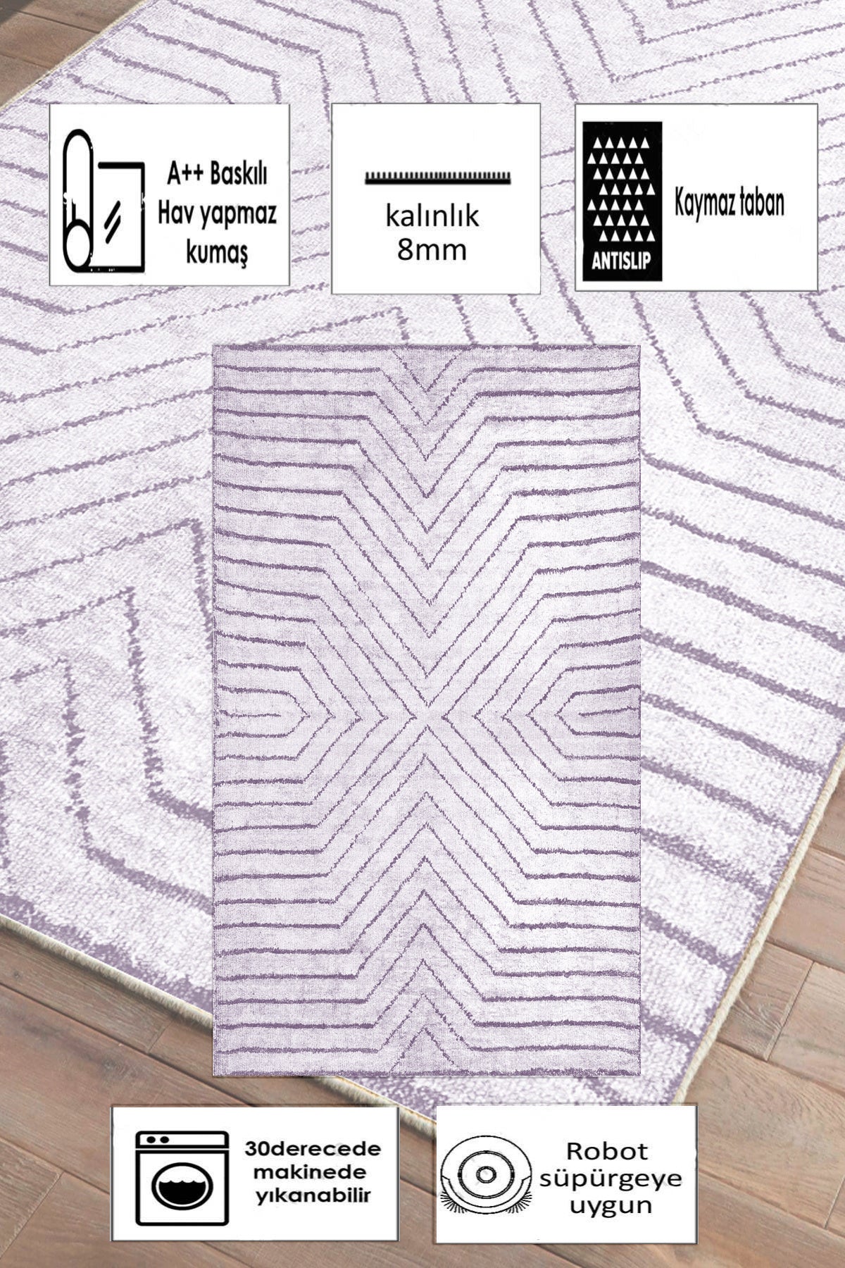 Line Lila Yeni Nesil Baskılı Halı & Yolluk