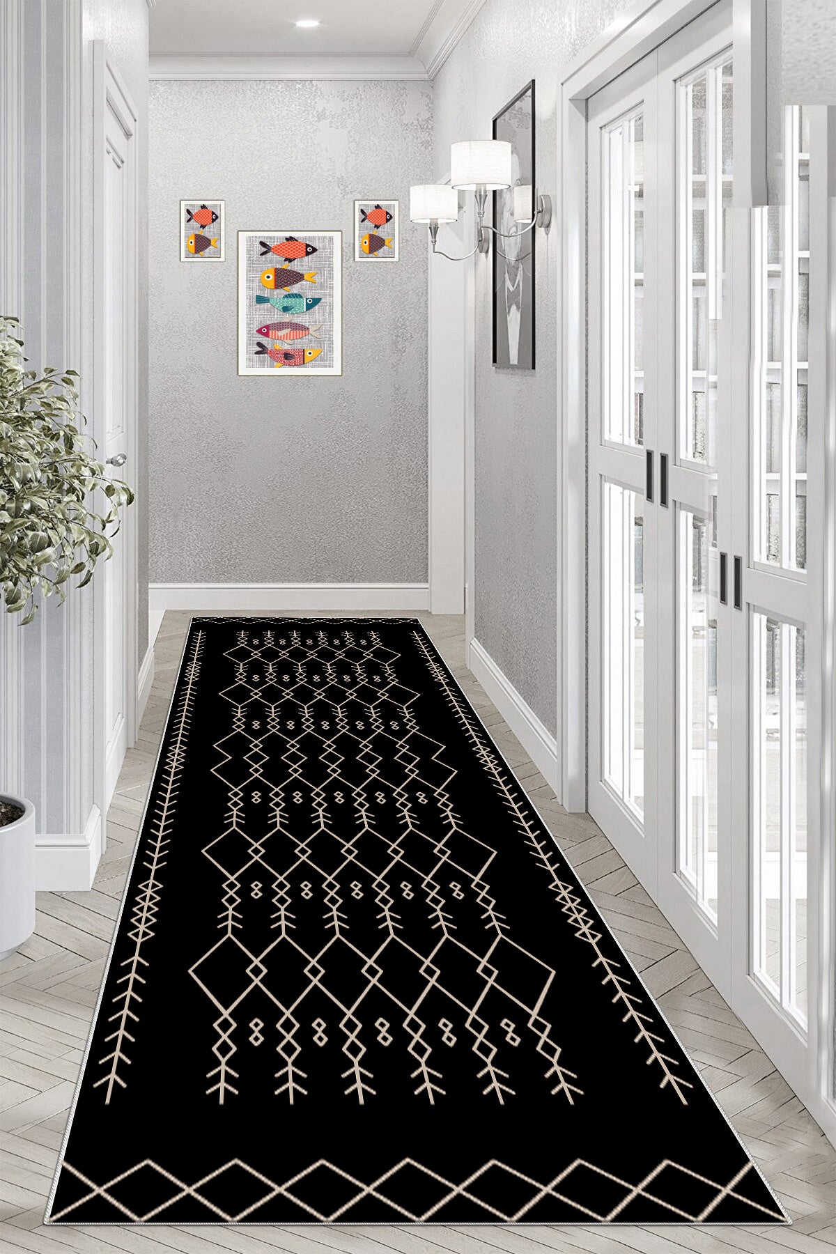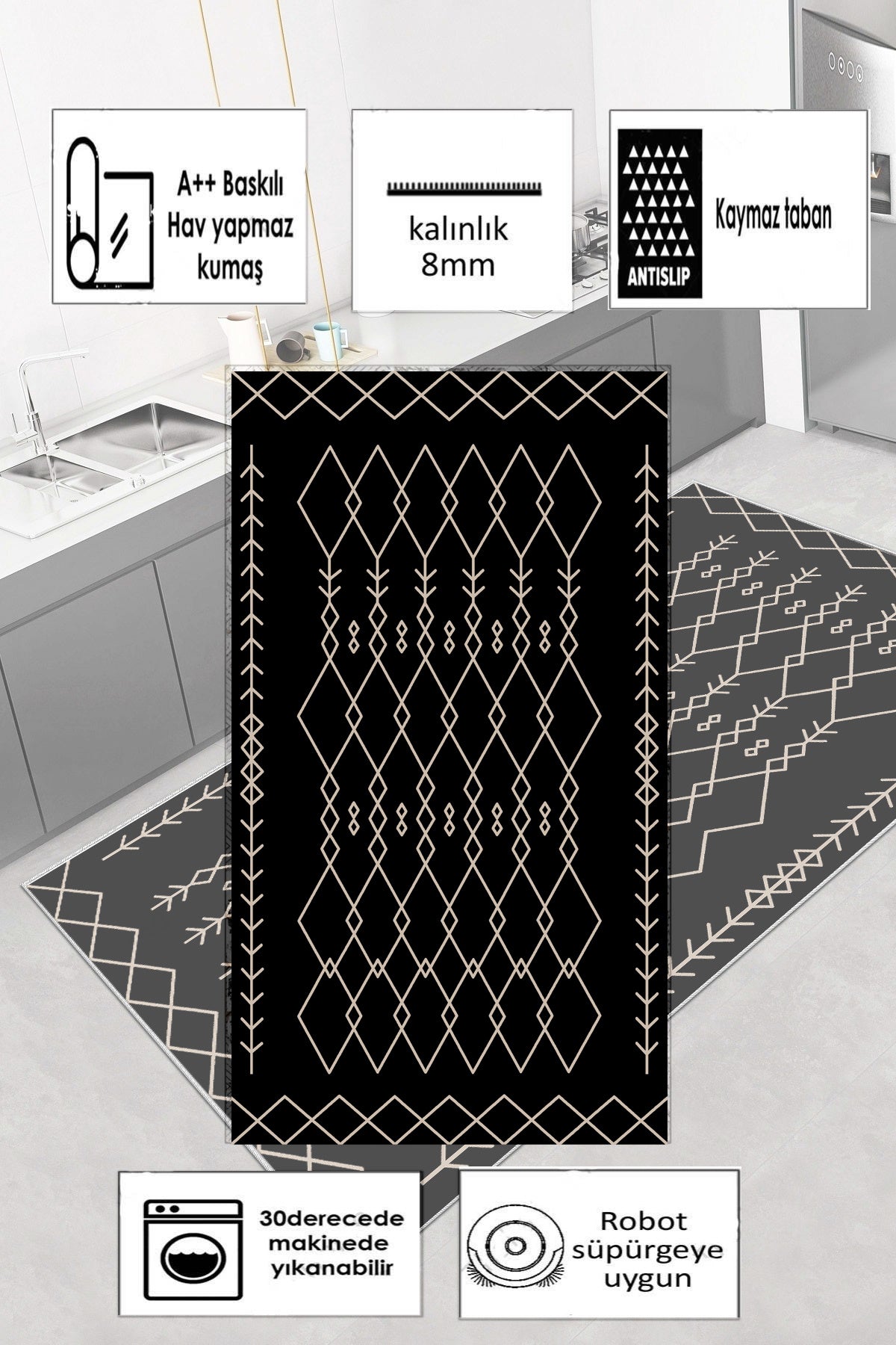 Perla Siyah Yeni Nesil Baskılı Halı & Yolluk