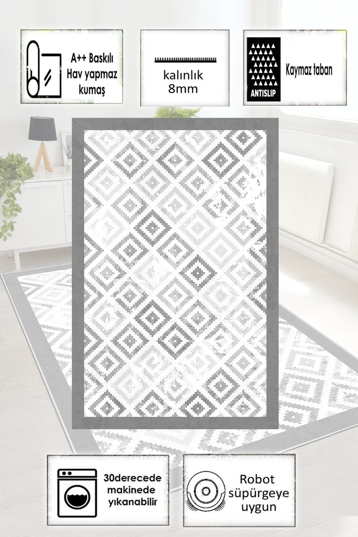 Petek Gri Baskılı Kaymaz Taban Mutfak Halısı
