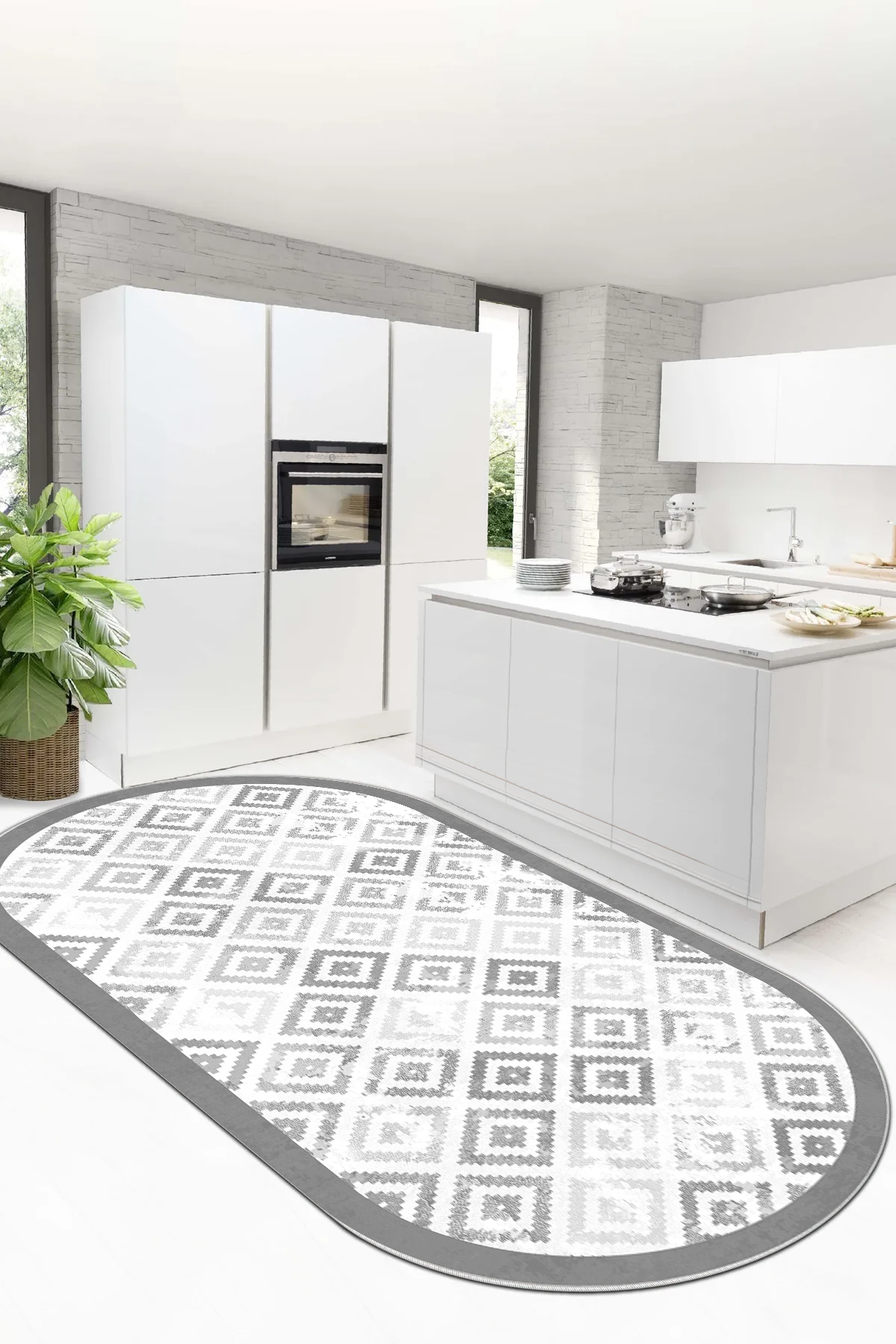 Petek Gri oval Yeni Nesil Baskılı Halı & Yolluk