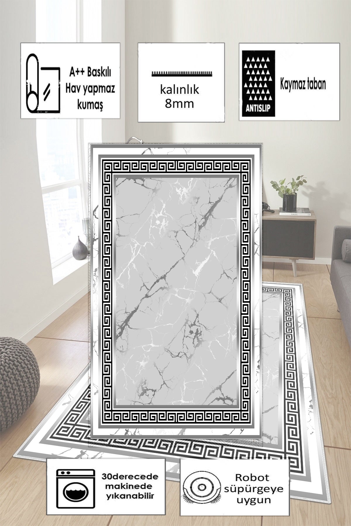 Versace Gri Varak Yeni Nesil Baskılı Halı & Yolluk