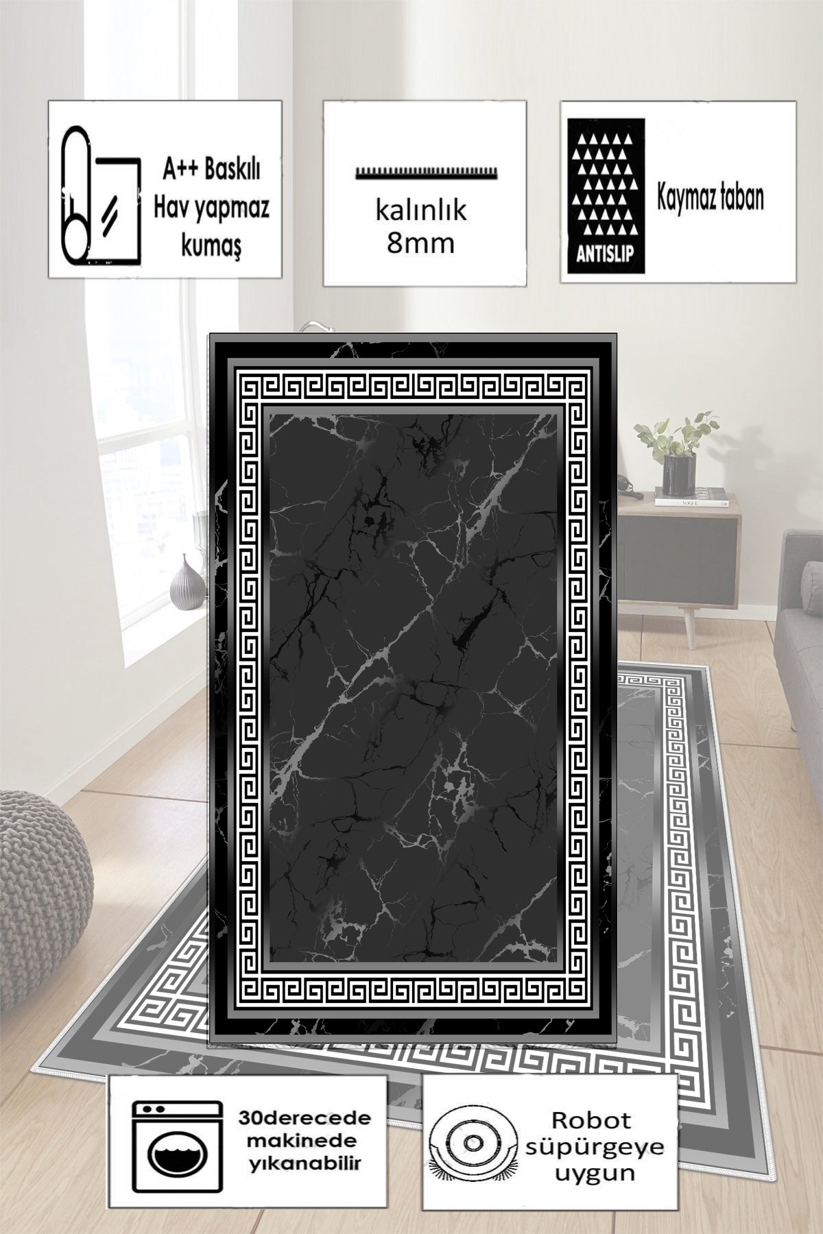 Versace Siyah Varak Yeni Nesil Baskılı Halı & Yolluk