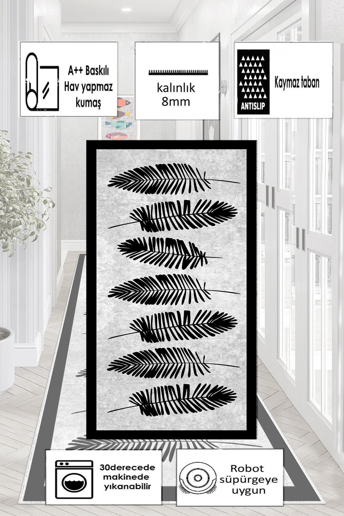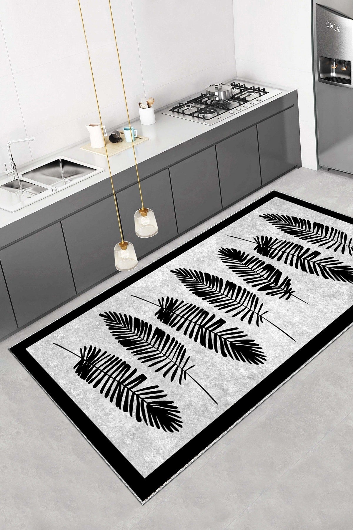 Yaprak Desen Baskılı Kaymaz Taban Mutfak Halısı